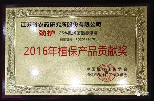 经过严格筛选(包括资质审查、市场调研、专家评审、微信投票等环节),江苏省农药研究所股份有限公司的劲护®以强势姿态斩获“2016年植保产品贡献奖”。